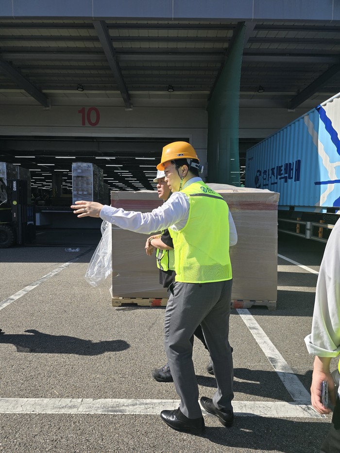 | ▲인천공항 물류허브에서 현장 지휘하는 방찬영 대표 |