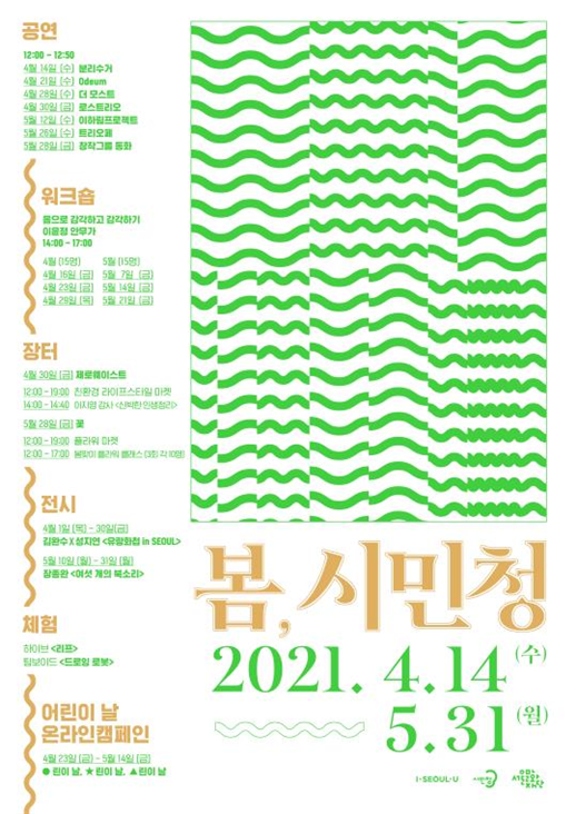 | ▲ 4, 5월 문화예술 프로그램 <봄, 시민청> 포스터 <사진제공=서울시> |