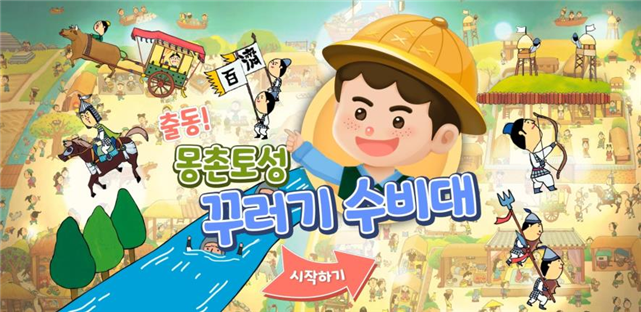 증강현실(AR) 미션게임 ‘출동! 몽촌토성 꾸러기 수비대’는 체험자가 백제시대로 떠나 몽촌토성을 지키는 내용이다. 구글 플레이스토어를 통해 다운로드가 가능하며, 자세한 사항은 몽촌역사관 누리집에서 확인할 수 있다.