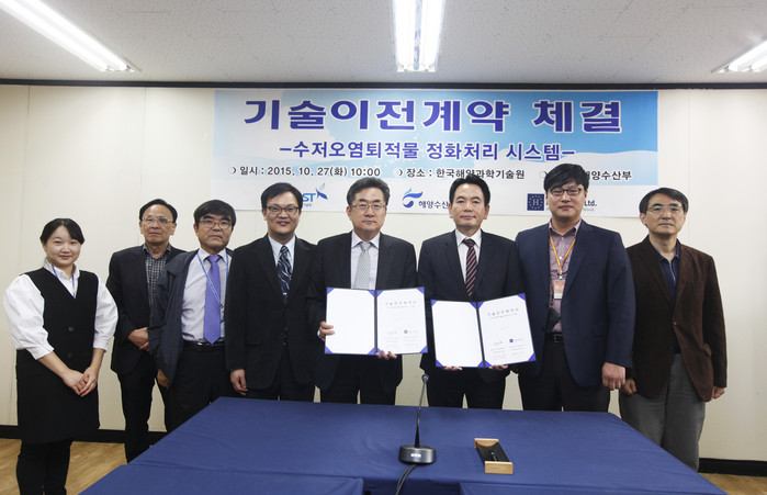 한국해양과학기술원(원장 홍기훈, 이하 KIOST)은 에이치플러스에코(주)(대표 신식우)와 ‘수저오염퇴적물 정화처리 시스템’에 대한 기술이전 계약 체결식을 10월 27일 개최했다고 밝혔다.