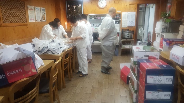 이날 법회에 참석한 신도들에게 천도복숭아, 밀전병, 밀국수, 증편, 애호박 부꾸미, 복숭아화채 등을 나누는 등 300여명에게 귤, 사과, 복숭아, 떡, 물 등을 정성스럽게 포장하여 사회적 약자들에게 전달했다.
