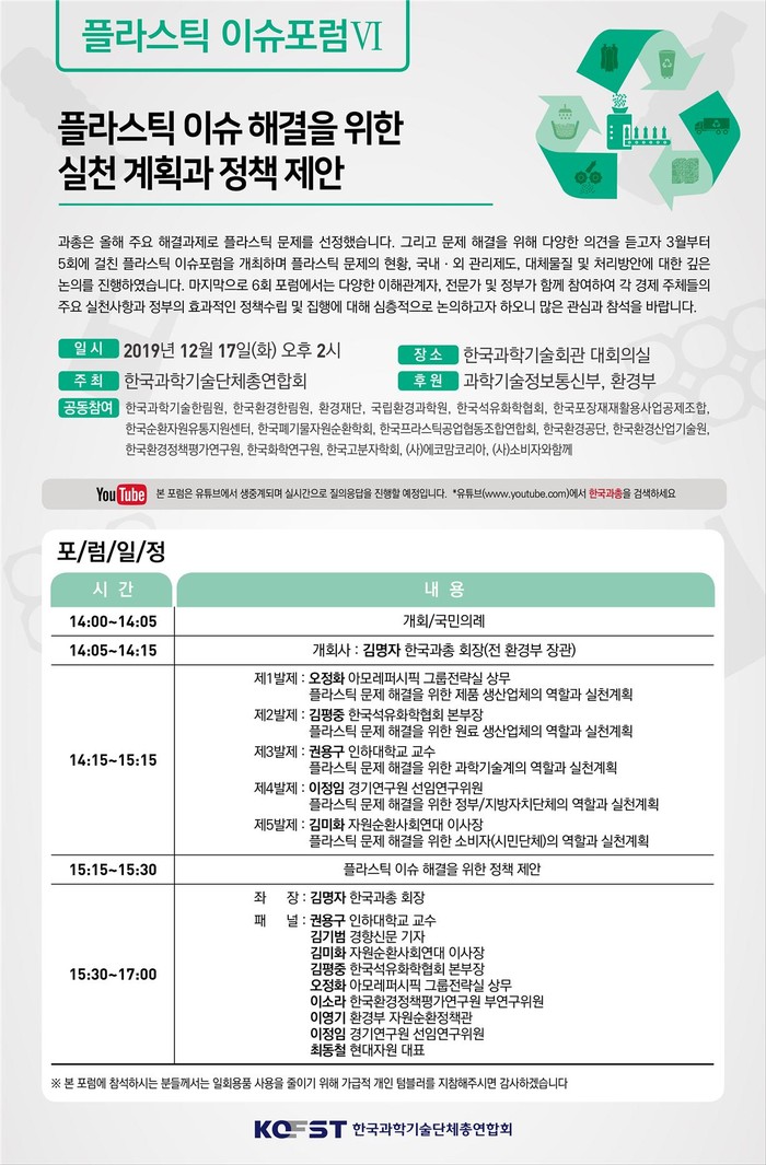 이에 과총은 지난 3월부터 올 한 해 동안 총 6회의 ‘플라스틱 이슈포럼’을 기획하고 개최해 왔다.