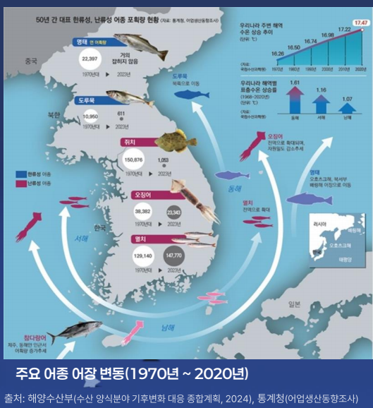 어종 구성도 바뀌고 있다. “과거 제주 남방 해역에만 서식하던 아열대성 어류가 동해 정치망에 매일 걸리고, 오징어는 이제 동해가 아닌 서해에서 더 많이 잡히는 상황”이라고 설명했다.