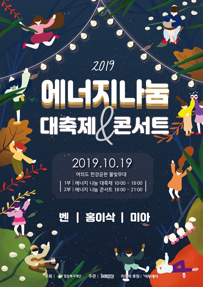 [환경미디어= 강유진 기자] 밀알복지재단(이사장 홍정길)이 19일 서울 여의도 여의도 한강공원 물빛무대 일대에서 '2019 에너지 나눔 대축제'를 개최한다.