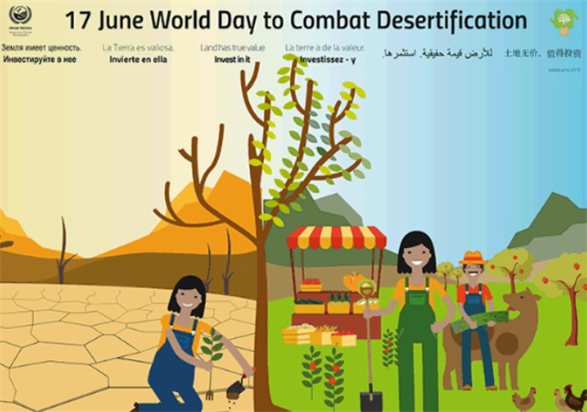 국제연합(UN)은 무리한 개발로 인한 사막화를 막고 환경을 보호하기 위해 ‘사막화방지협약’을 채택하고, 6월 17일을 ‘세계 사막화 방지의 날’(World Day to Combat Desertification and Drougt)로 지정했다.