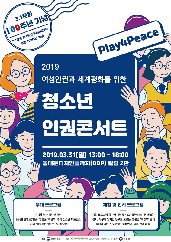 3·1운동 및 대한민국 임시정부 수립 100주년을 맞아 열리는 이번 행사는, 청소년들이 일본군 ‘위안부’ 문제, 전시(戰時) 성폭력 등 여성인권과 세계 평화에 대해 쉽게 이해하고 생각할 수 있는 기회를 제공하기 위해 마련됐다.