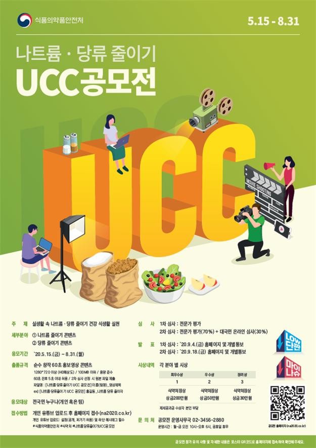 [환경미디어= 김한결 기자] 식품의약품안전처는 ‘나트륨·당류를 줄인 건강한 식생활 실천’을 주제로 덜달고·덜짜게 생활 속 실천 영상 UCC 공모전을 오는 5월 15일부터 8월 31일까지 전 국민을 대상으로 실시한다.