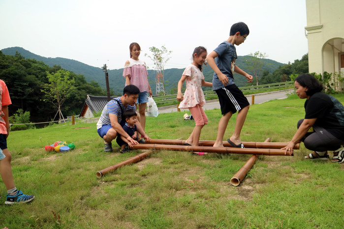 휴양림 이용객들의 아세안 전통놀이체험<사진제공=산림청>
