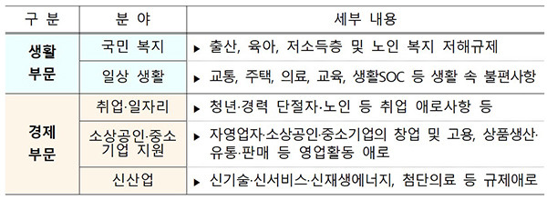 | ▲ 민생규제 혁신 과제(5개 분야) |
