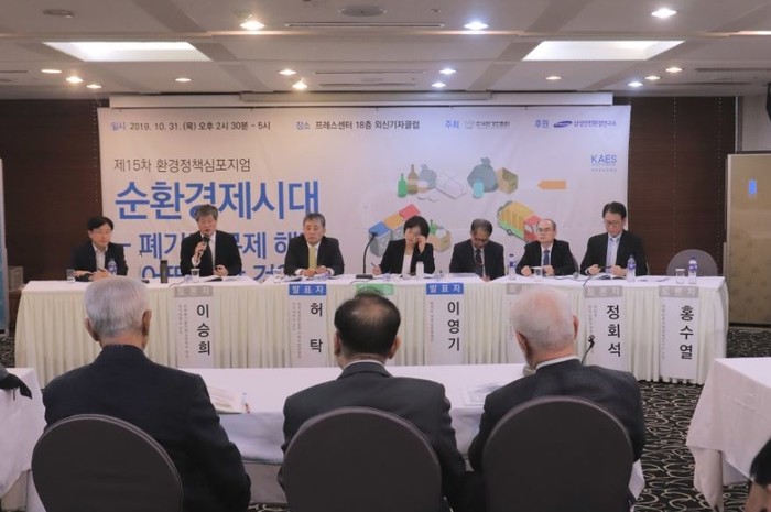 [환경미디어= 강유진 기자] 지난 10월 31일 14시 30분부터 프레스센터에서 '제15차 환경정책심포지엄'이 개최됐다. 한국환경한림원이 주최하고 삼성안전환경연구소가 후원하는 이번 심포지엄은 '순환경제시대-폐기물 문제 어떻게 할 것인가?'를 주제로 열렸다.