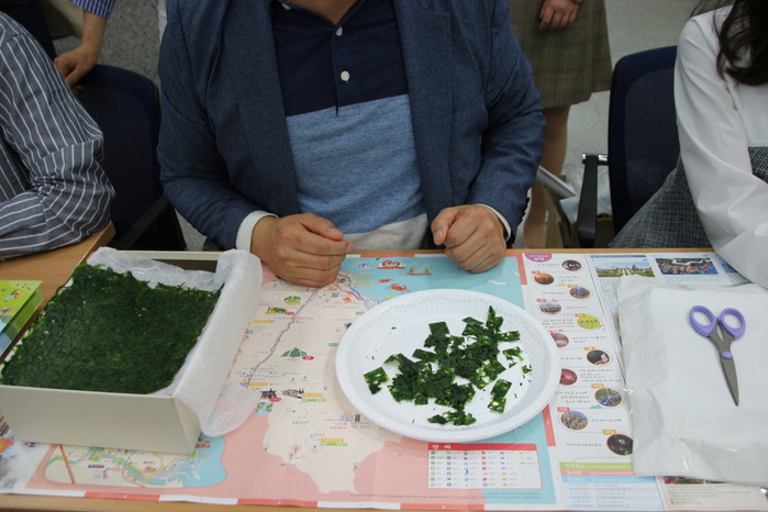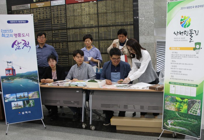 | ▲ 담백하고 고소한 맛이 일품인 삼척시 특산물 민물김 시식코너 |