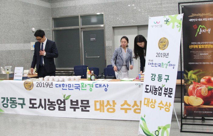 2011년부터 올해까지 9년 연속 대상을 수상한 강동구가 시상식 날 손님들 간식거리를 선사해 사랑을 받았다. 신선한 야채와 과일 위에 꿀시럽을 얹어 새콤달콤한 맛으로 제대로 입맛을 사로잡았다. 샐러드에 얹은 꿀은 강동구 근린공원 양봉장에서 직접 채취한 것이다. 서울에서 처음으로 도시농업 사업을 추진해온 강동구는 풍부한 녹지율과 친환경 도시농업 운영으로 벌 생육에 최적의 환경을 자랑한다. 구 관계자는 “2013년부터 도시양봉을 시작해서 현재까지 280여 명의 양봉가를 배출해냈다. 처음에 10개였던 벌통이 40통으로 늘어났고, 지난해에는 이 중 30개 벌통에서 아카시아꿀, 잡화꿀, 감로 등 866kg 가량의 꿀을 채밀했다”고 전했다.
