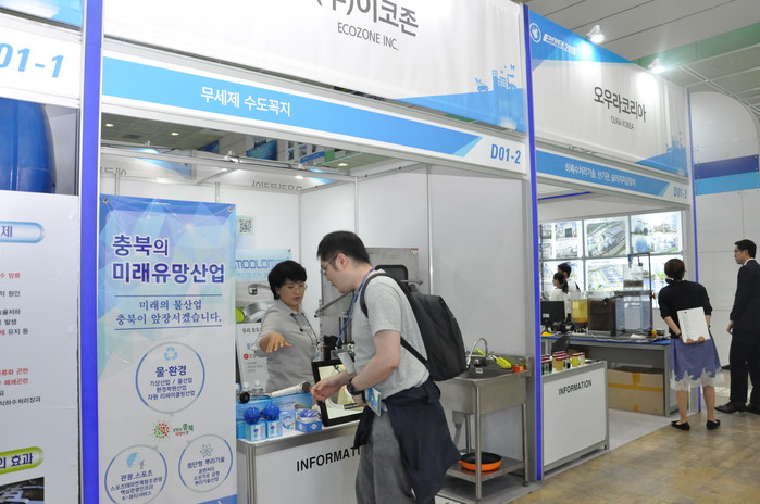 충북도는 물산업을 육성하기 위한 다양한 지원을 하고 있는데 이번 전시회에는 충북도의 지원을 받은 유망 중소기업이 눈에 띄었다. 바로 (주)이코존(대표 오경이)과 한광물산(대표 박은남)이다.