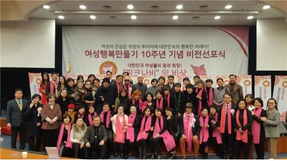 여성행복만들기 한국여성중앙총연합회(회장 곽은영)는 지난 15일 국회헌정기념관 대강당에서 오제세 국회의원, 보건복지부와 공동으로 "여성행복만들기 10주년 '핑크나비'의 비상 비전선포식"을 진행했다.