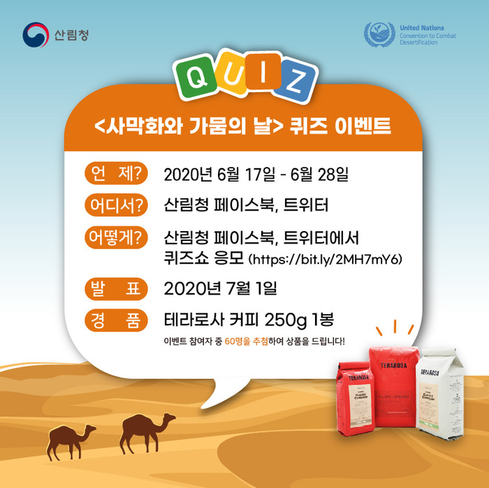 온라인 이야기쇼는 산림청과 유엔사막화방지협약(UNCCD) 사무국이 공동제작해 6월 17일에 유엔사막화방지협약(UNCCD) 사무국 누리집, 국제연합(UN) 티브이(TV)를 비롯한 국제방송사에 방영될 예정이며, 퀴즈 행사는 산림청 페이스북을 통해 참여할 수 있다.