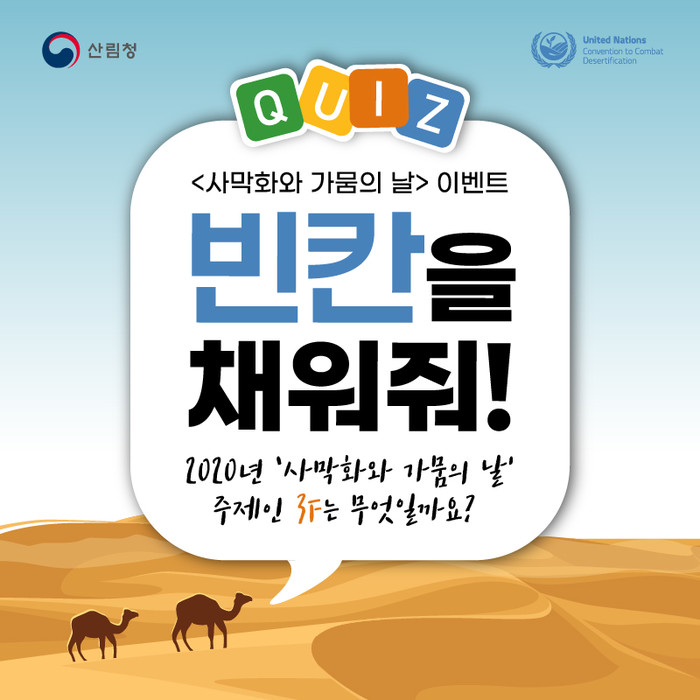 [환경미디어= 김한결 기자] 산림청(청장 박종호)은 6월 17일 세계사막화 및 가뭄의 날을 기념하기 위해 유엔사막화방지협약(UNCCD) 사무국과 함께 다양한 행사를 온오프라인을 통해 개최한다.