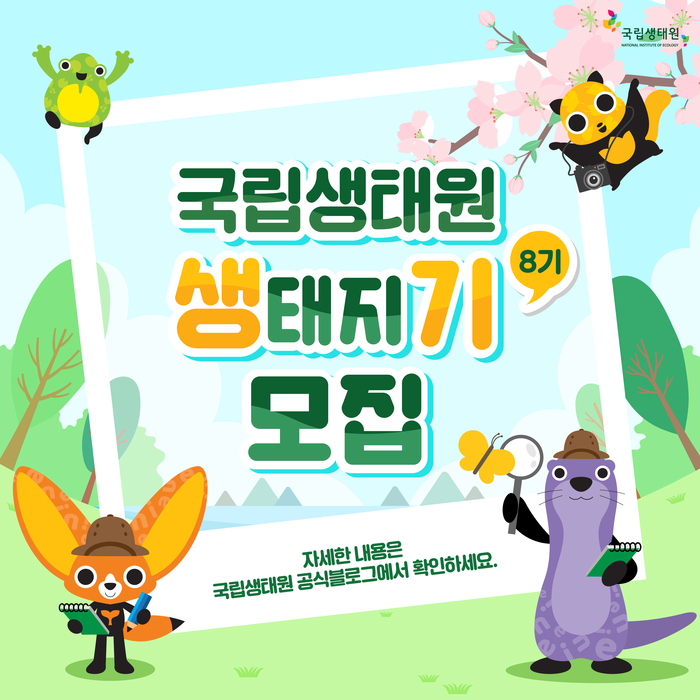 [환경미디어= 김한결 기자] 국립생태원은 생태계 보전가치 확산을 위해 대국민 소통에 기여할 소셜기자단 ‘제8기 생태지기’를 5월 4일부터 17일까지 모집한다.