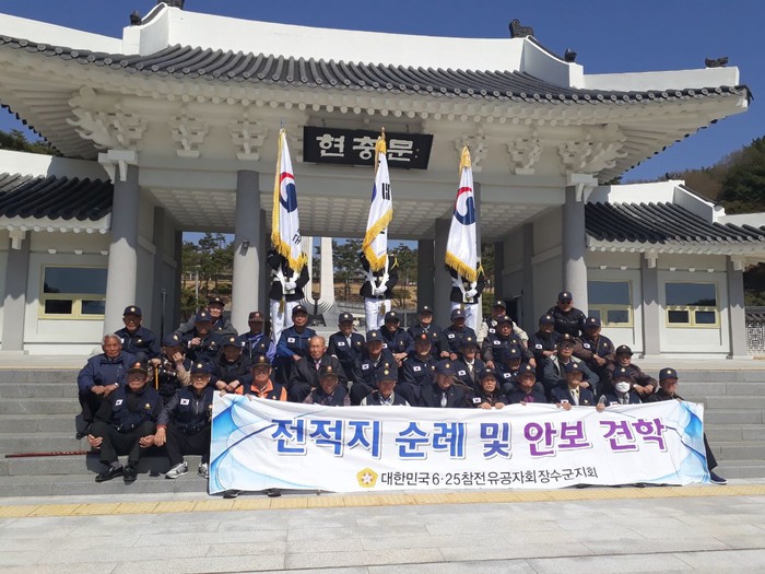 대한민국 6.25참전유공자회 장수군지회(지회장 임순승)는 4일 참전유공자 회원 50여명이 참여한 가운데 6.25참전 호국영웅 전적지 순례 행사를 개최했다.