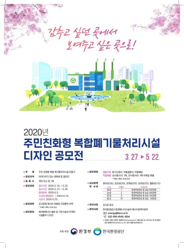 [환경미디어= 김한결 기자] 환경부와 한국환경공단은 주민이 선호하는 폐기물 처리시설을 만들기 위해 3월 27일부터 5월 22일까지 ‘주민친화형 복합폐기물처리시설 공공디자인’을 공모한다.