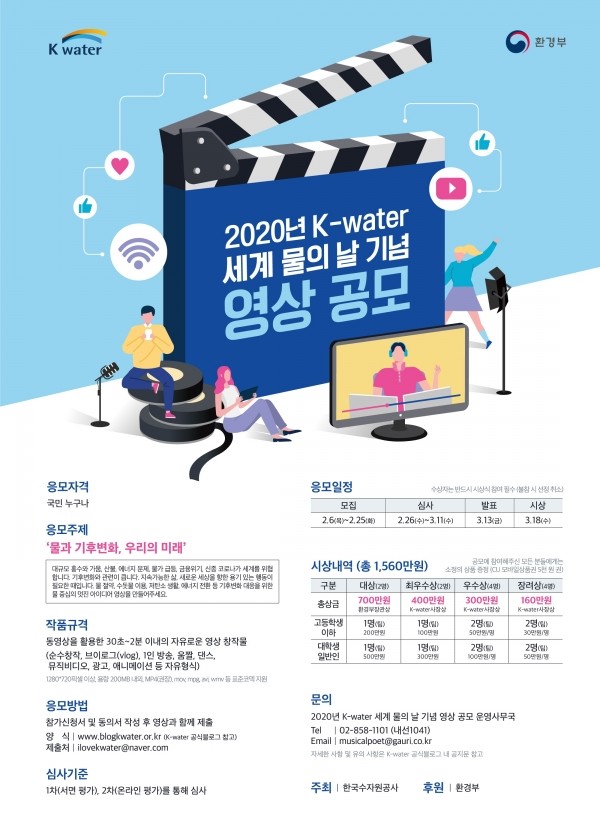 자세한 사항은 수공 공식 블로그 또는 ‘2020년 세계 물의 날' 기념 영상 공모 운영사무국에서 확인할 수 있다.