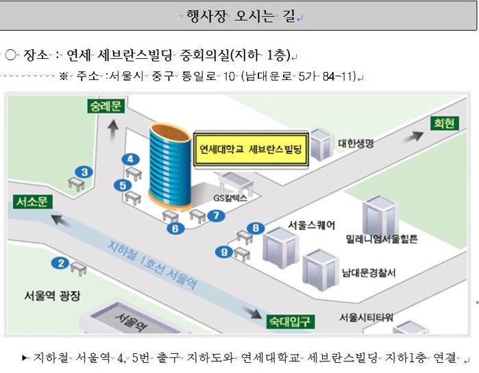 장 소 : 연세세브란스빌딩 중회의실(지하1층), 서울역 4번 출구