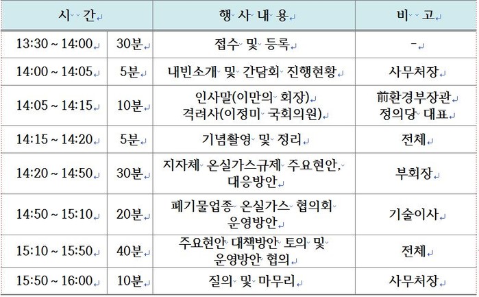 | ▲ 폐기물업종 온실가스협의회 간담회 행사프로그램 |