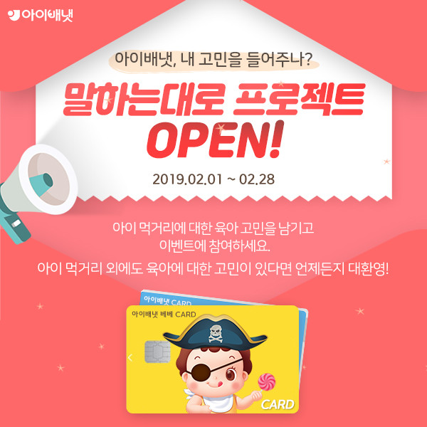 이번 이벤트는 2월28일까지 아이배냇몰에서 참여할 수 있다. 응모방법은 아이배냇몰 로그인후 원하는 만능카드를 선택한 뒤 아이 월령과 육아시 힘들었던 고민을 댓글로 작성해 참여하면 된다.