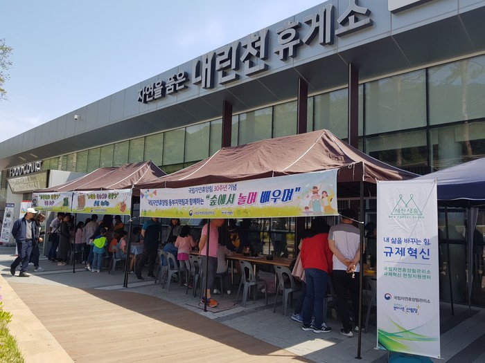| ▲ 인제 내린천 휴게소 체험 홍보부스 <사진제공=국립자연휴양림관리소> |