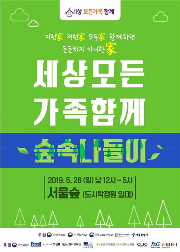 여성가족부(장관 진선미)는 모든 형태의 가족을 포용할 수 있는 사회적 인식 확산과 환경을 조성하기 위한 캠페인의 일환으로, 26(일) 낮 12시부터 오후 5시까지 서울숲에서 “세상모든가족함께 숲속나들이” 행사를 연다.