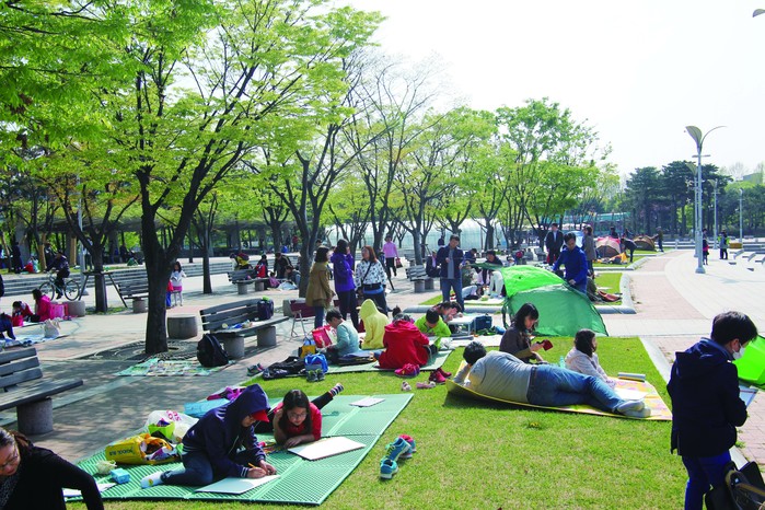 | ▲ 어린이들이 공원에서 자유롭게 그림을 그리고 있는 모습 |