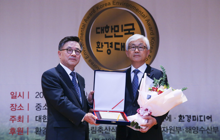 ▲ (왼쪽부터)이규용 대한민국환경대상위원회 위원장, 유병훈 논산시 부시장 |