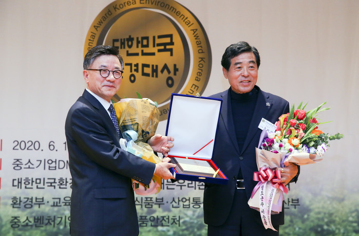 ▲ (왼쪽부터)이규용 대한민국환경대상위원회 위원장, 윤화섭 안산시장 |