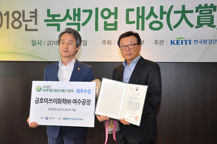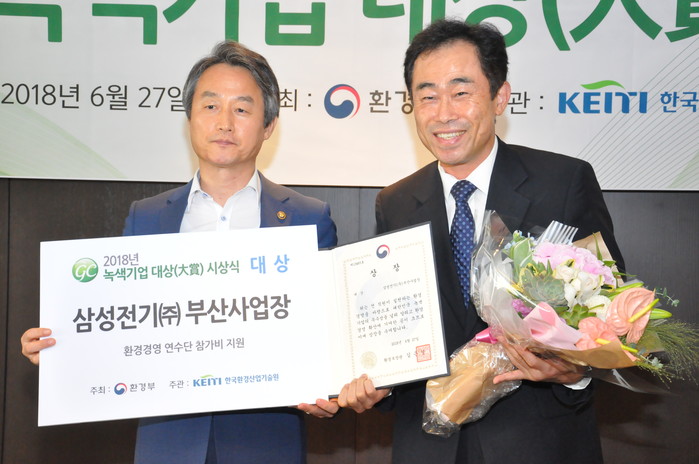 녹색기업 대상으로는 삼성전기㈜ 부산사업장이 선정됐으며, 최우수상은 금호미쓰이화학㈜ 여수공장, GS파워㈜ 안양열병합발전처가 선정됐다.