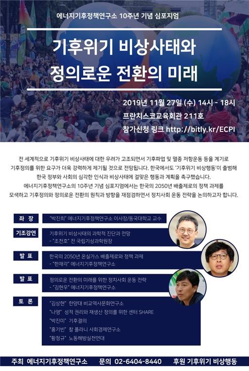 연구소는 임박한 위기에 맞서 대전환을 요구하는 현재의 국면에서 한국 정부의 장기 정책 과제와 정치사회적 운동 전략을 제시하는 ‘기후위기 비상사태와 정의로운 전환의 미래’를 주제로 10주년 심포지엄을 개최한다.