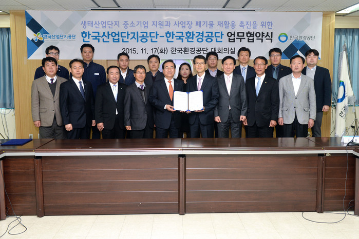이를 위해 이시진 한국환경공단 이사장과 강남훈 한국산업단지공단 이사장이 17일 인천광역시 서구 한국환경공단 종합환경연구단지에서 ‘생태산업단지 중소기업 지원과 사업장 폐기물 재활용 촉진을 위한 업무협약’을 체결하고 상호 협력해 나가기로 했다.
