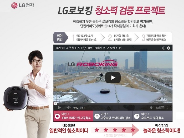 | △ LG전자가 직설마케팅을 통해 화제를 모으고 있다. 사진은 LG전자의 로보킹 청소 영상. (사진제공 LG전자) |