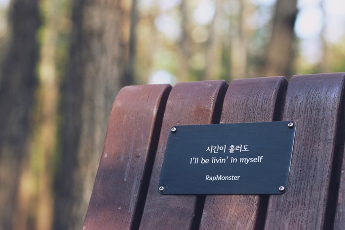 | ▲ 서울숲공원에 입양된 방탄소년단 RM벤치 <사진=서울그린트러스트> |