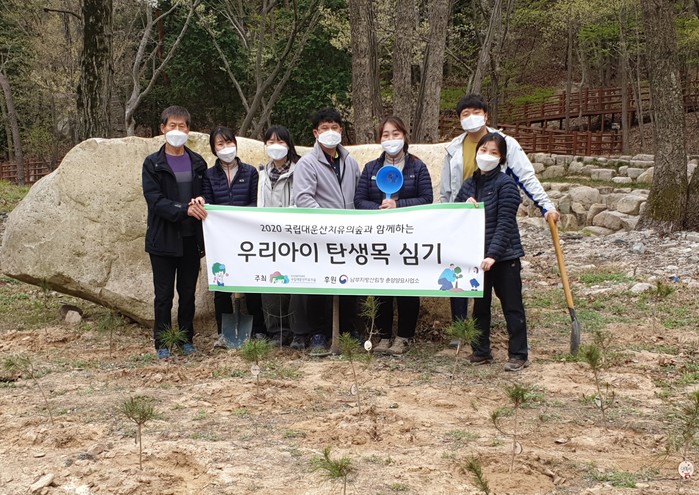 [환경미디어= 김한결 기자] 산림청 한국산림복지진흥원 국립대운산치유의숲(이하 치유의숲)은 제 75회 식목일을 맞이해 코로나19 극복과 건강한 출산을 기원하는 탄생목 심기 행사를 13일 진행했다고 밝혔다.