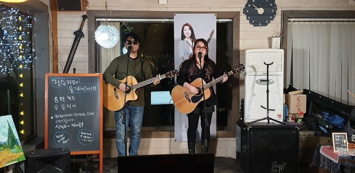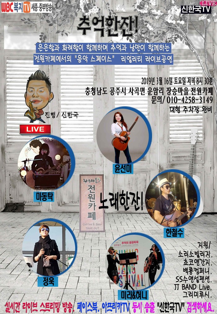 라이브지킴이 신한국TV가 지난 16일 공주 장승마을 전원카페에서 '추억한잔! 노래한잔!'에 봄과 함께 이야기했다.