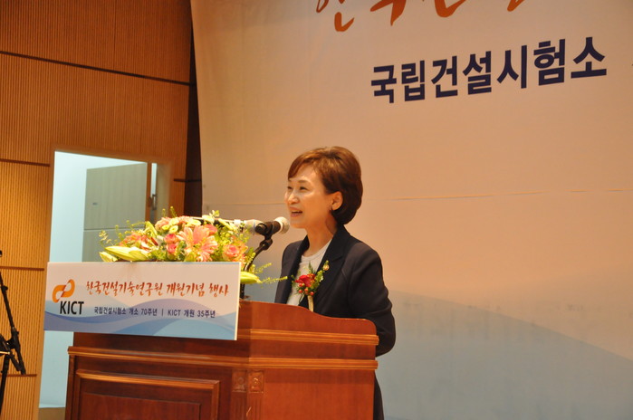 김현미 국토교통부 장관은 축사에서 “최근 선진국이 사물인터넷, 빅데이터 등 첨단기술 융복합 건설신기술로 해외시장을 주도하고 있는 가운데, KICT가 지금까지 건설기술분야 싱크탱크역할을 훌륭히 수행해왔다”며, "산업간 융복합을 가로막는 낡은 규제를 허물고 스마트 건설기술 개발, 스마트건설 벤처창업허브 역할을 수행하는데, 지원을 아끼지 않을 것"이라고 약속했다.