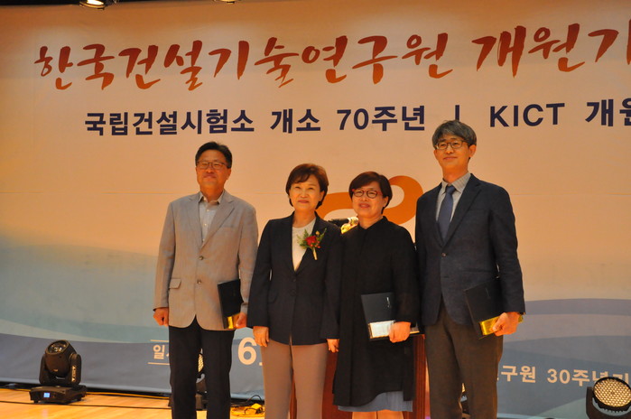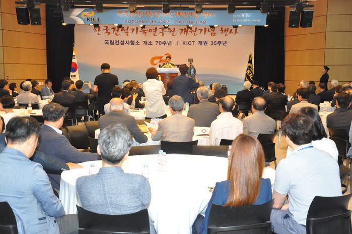 한국건설기술연구원(원장 한승헌, 이하 KICT)은 국립건설시험소 개소 70주년, 한국건설기술연구원 개원 35주년을 맞아 6월 8일(금) 오후 2시부터 일산 본원 30주년 기념홀에서 기념식을 개최하고, 과학기술로 인류사회와 국가의 지속가능한 발전에 기여할 것을 다짐하는 ‘KICT 비전 2030’을 선포했다.