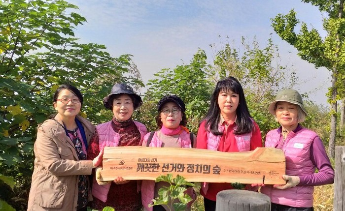 | ▲ 한국여성유권자서울연맹이 ‘깨끗한 선거와 정치의 숲’을 함께 조성했다.<사진제공=한국여성유권자서울연맹> |